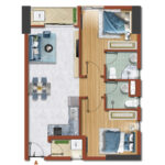 Mẫu căn hộ: 2PN và 2WC tầng 3-20 block Eleva 06 và 14