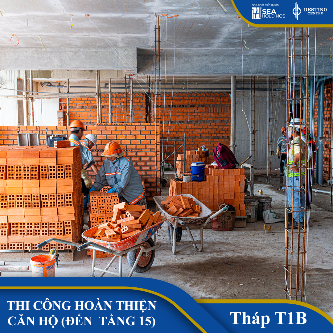 ✅ Tháp T1B: Hoàn thiện căn hộ tầng 15, đổ cột vách tum, sắp cất nóc.
