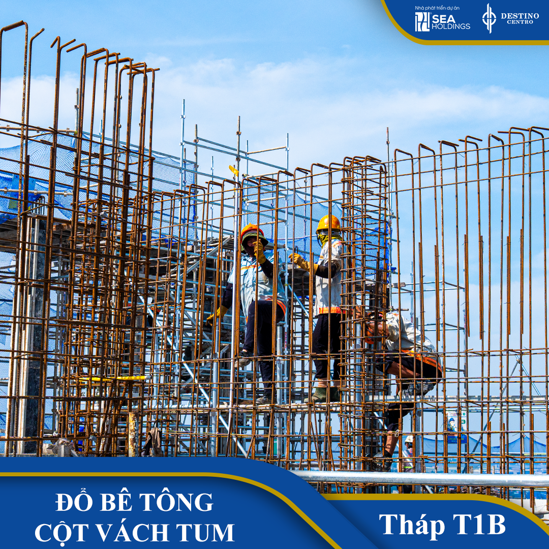 Tháp T1B đang là “ngôi sao sáng” dẫn đầu về tốc độ xây dựng tại dự án. Hiện tại, đội ngũ kỹ sư và công nhân đang tập trung cao độ cho hạng mục thi công đổ cột vách tầng Tum. Đây là công đoạn then chốt cuối cùng để chuẩn bị cho sự kiện Cất nóc (Topping out) dự kiến diễn ra trong thời gian rất ngắn sắp tới.
