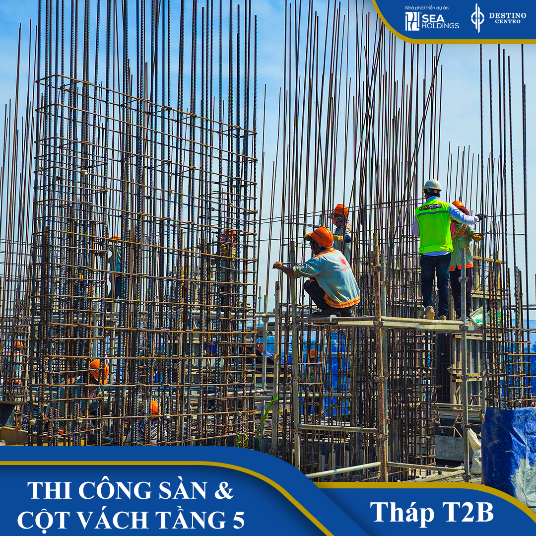 ✅ Tháp T2B: Thi công sàn & vách tầng 5.